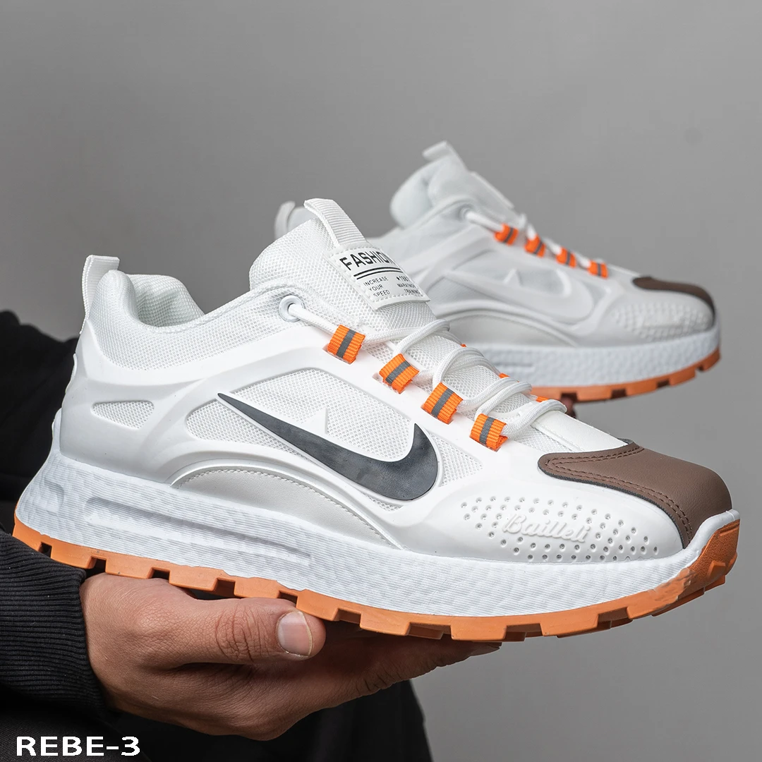 ✔ REBE-3: أبيض مع تفاصيل برتقالية وبنية لمظهر عصري مختلف.